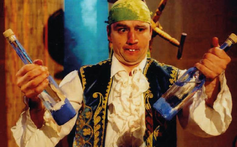 Mit der Gitarre und allerlei Unsinn im Gepäck, stellt er die Welt auf den Kopf. Große Schuhe, und Hosen sowie rote Nase sind seine Markenzeichen. Ein Spaß für Jung und Älter.